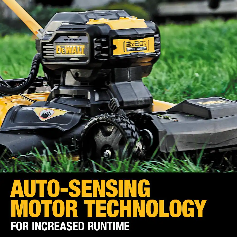 The 2X 20-Volt MAX 3-in-1 Cordless Self Propelled Lawn Mower is powered by two 20-Volt MAX 10 Ah batteries to deliver 40-Volt of power and 400-Watt Hours. The adjustable self propelled function allows you to choose your pace of cut. The unit features a 21.5 in. steel deck and a high-output brushless direct drive motor. delivering powerful performance for up to 60-minutes of runtime. Equipped with Auto Sensing technology the unit increases torque in high overgrowth. With 6 cutting heights that range from 1.5 in. to 4.0 in.. you can handle any size lawn. The lawn mower’s 3-in-1 capability allows for mulching. bagging or side clipping discharge. It is perfect for properties up to 1/2 acre.